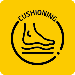 Cushioning material can absorb impact forces in the sole of the shoe during wear, allowing for greater comfort and helping to alleviate fatique.