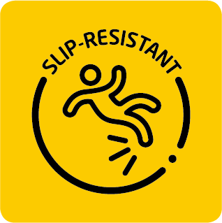 Slip-Resistant material prevents wearer from slipping on the sole of shoe on both dry and wet surfaces, thereby protecting personal safety.